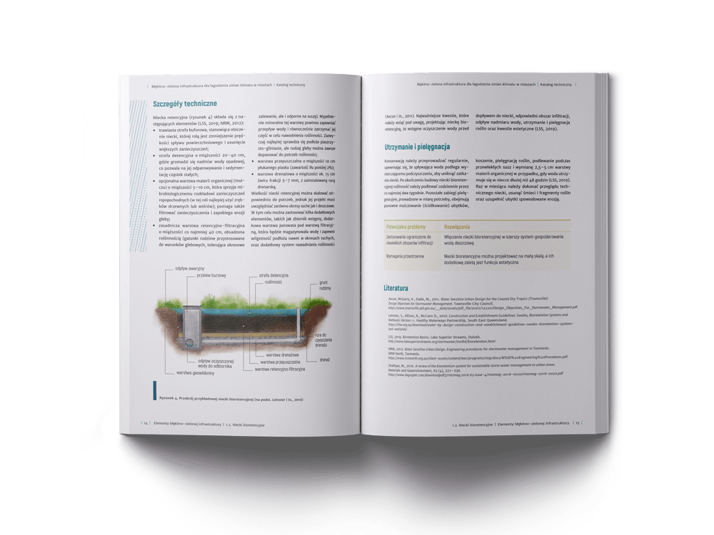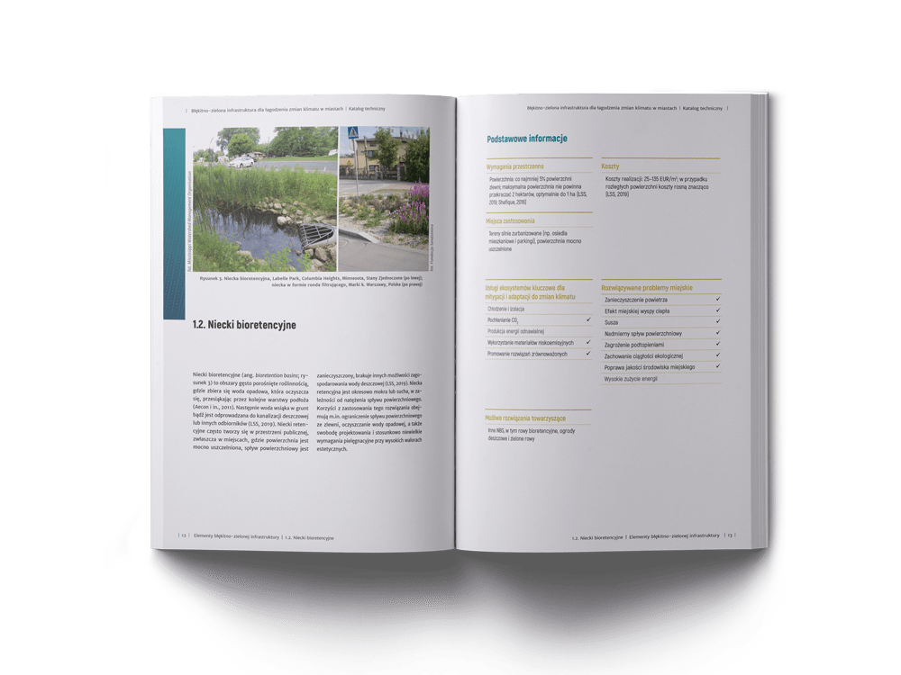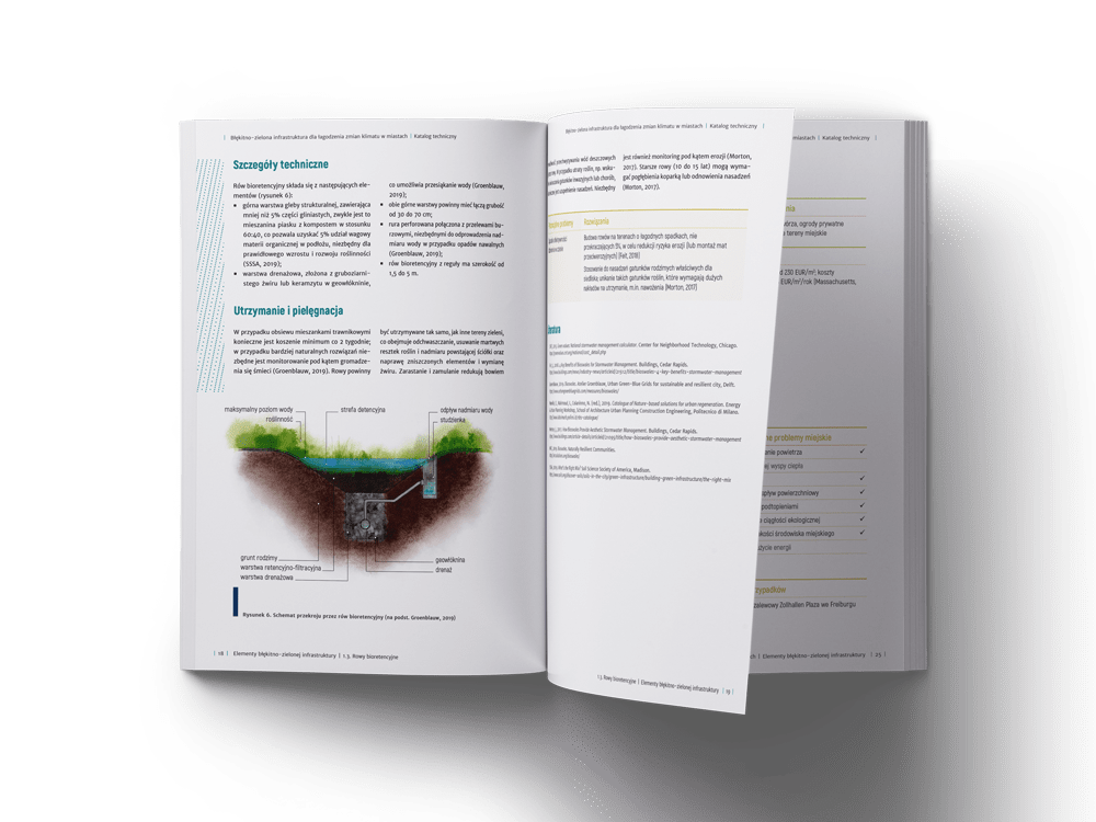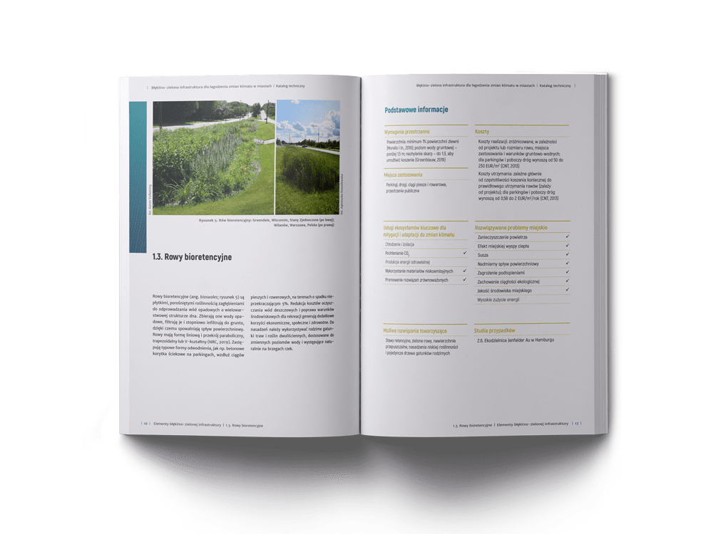 Addressing climate change in cities is 100 pages long catalogue developed by the Ecologic Institute and the Sendzimir Foundation about utilizing nature-based solutions (NBS) such as green roofs and facades, sustainable drainage system or bioretention infrastructure, their cost-effectiveness and potential to mitigate climate change together with some implementation guidelines. It is complemented by 80 pages long guide on policy instruments that can be used to foster NBS uptake in cities.