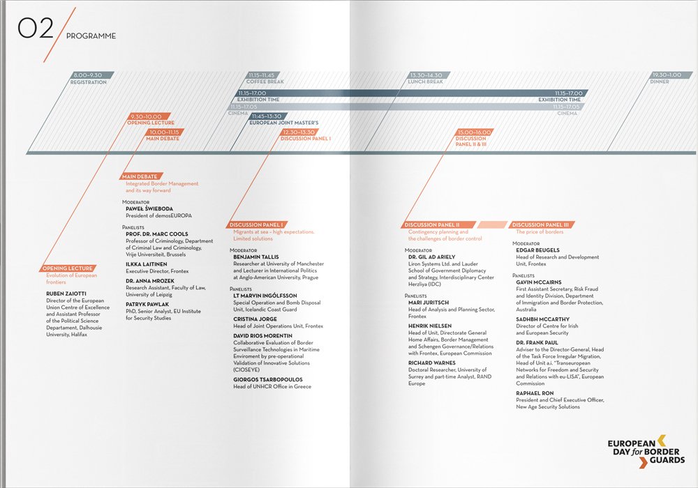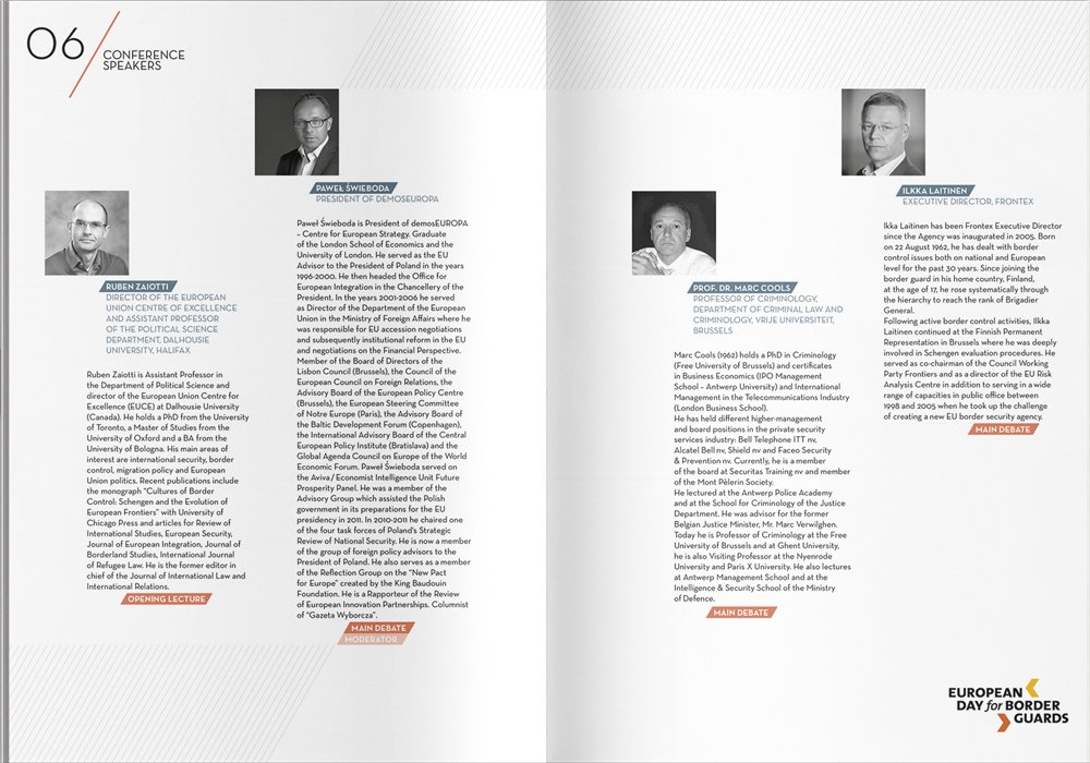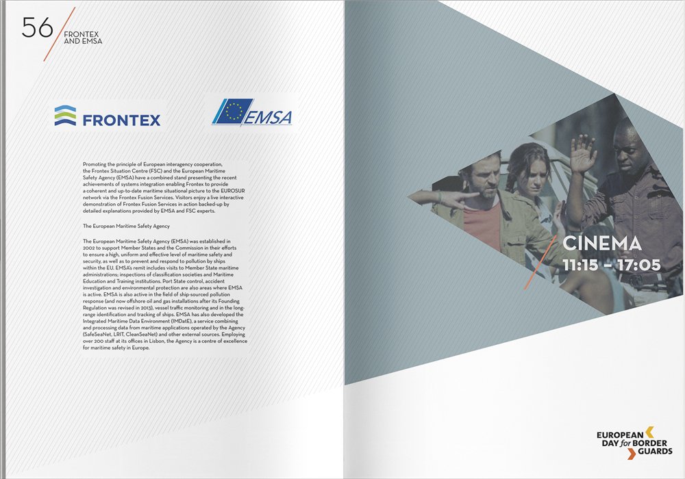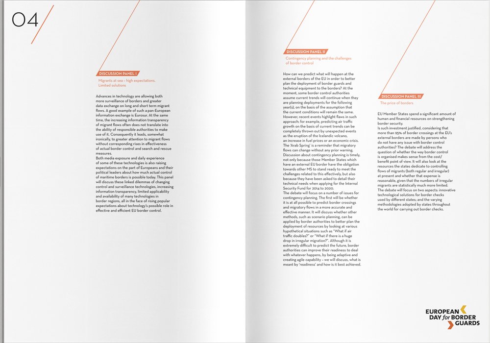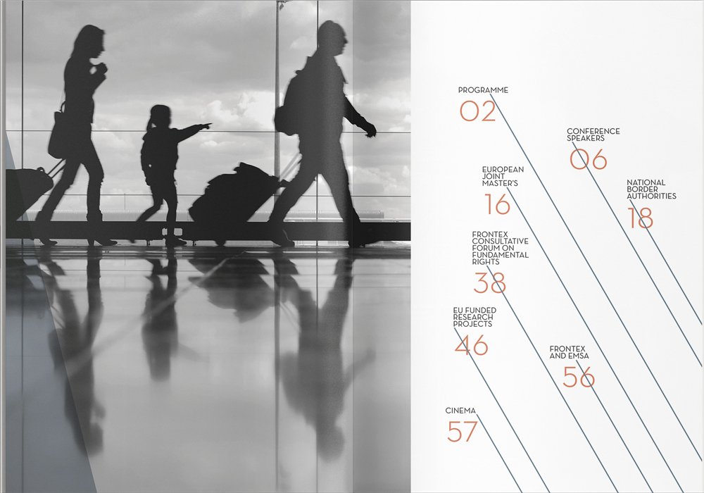 While working with Foxrabbit I designed the brochure for the European Day for Border Guards (ED4BG) conference. The challenge was to create the entire brochure in just a few days. We were asked to use something a little different than the standard ED4BG branding. We decided to use additional colors – dark blue and grey-blue and Neutra typeface with lots of diagonal patterns.