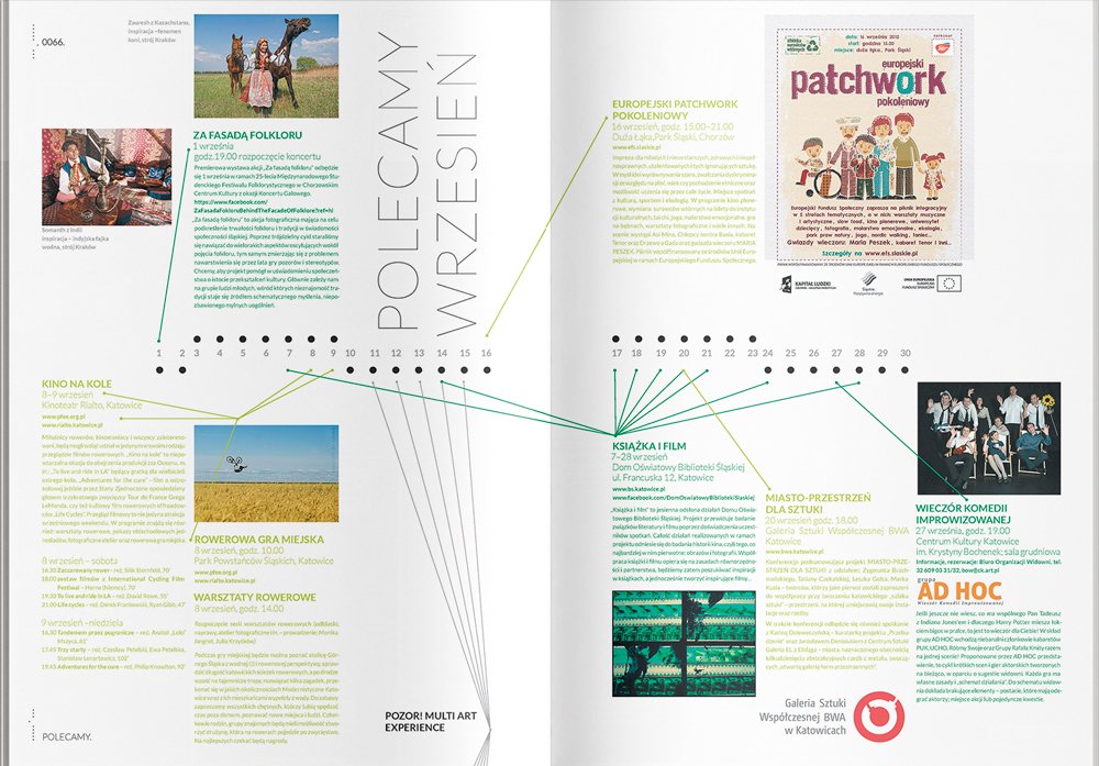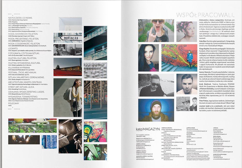 In 2012 'katoMagazyn' was a newly established lifestyle magazine. It was targeted to young Silesian people in their 20's and 30's. I was asked to design the layout and logotype, curate the content and set everything to print. The first issue was released in July of that year and contained 70 pages of articles, interviews and reports about the people and places of Katowice, Silesia (Poland). We published 3 issues in 3 months. The whole magazine was set in Lato font and accompanied by a subtle dot pattern. It was printed in a highly specialized printing house in Ruda Śląska (Silesia) on ecology offset paper.